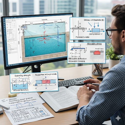 - โมดูลัสความยืดหยุ่น (E): ความลับของความแข็งแกร่ง ลองนึกถึงไม้บรรทัดพลาสติก (ค่า E ต่ำ) กับไม้บรรทัดเหล็ก (ค่า E สูง) เมื่อคุณออกแรงกดเท่าๆ กัน ไม้บรรทัดพลาสติกจะงอมากกว่าเหล็กมาก นั่นเป็นเพราะเหล็กมีค่า E ที่สูงกว่ามากนั่นเองครับ สำหรับวัสดุอะคริลิกที่ใช้สำหรับสระว่ายน้ำ ก็จะมีค่า E ที่สูงเป็นพิเศษ ซึ่งเป็นตัวเลขที่บอกวิศวกรว่าวัสดุนี้มีความแข็งแกร่งเพียงพอที่จะต้านทานแรงดันน้ำมหาศาลได้ ค่านี้ได้มาจากการทดสอบในห้องปฏิบัติการเพื่อวัดความสามารถของวัสดุในการต้านทานการเสียรูป