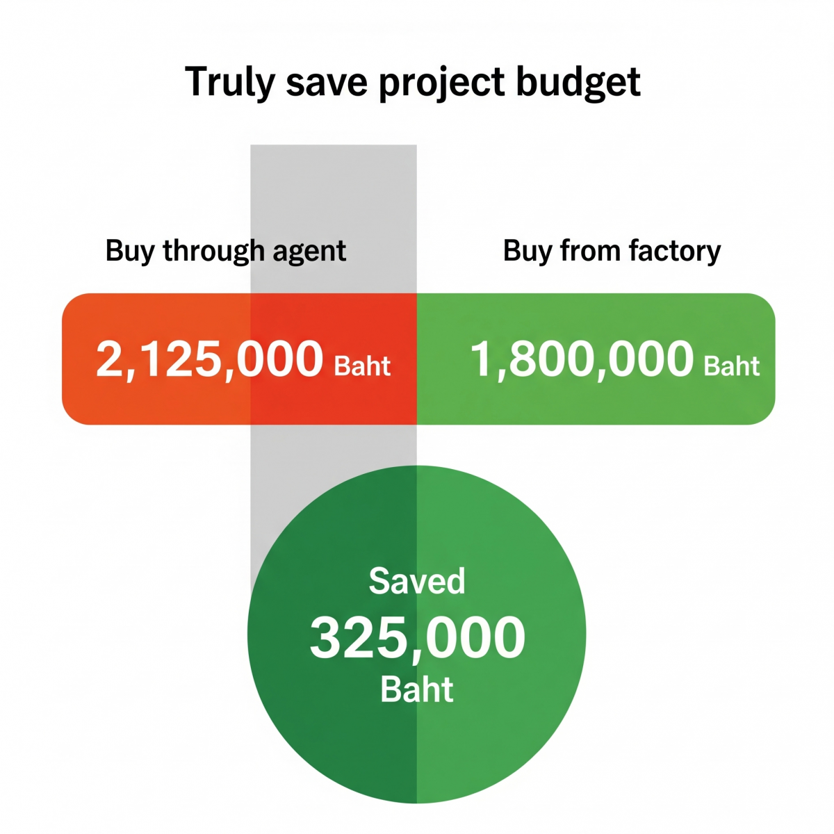 กระบวนการสั่งซื้อผ่านตัวแทนจำหน่ายมักมีการบวกกำไรในทุกชั้นการขาย ต้นทุนเพิ่มขึ้นเฉลี่ย 10–25% ต่อโครงการ ขณะที่การสั่งตรงจากโรงงานสามารถลดต้นทุนได้ทันที